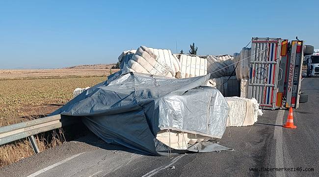 Kazada sürücü yaralanırken, saçılan malzemeler nedeniyle yol üzerinde trafik kontrollü sağlandı. İhbar üzerine olay yerine gelen sağlık ekipleri tarafından hastaneye sürücünün sağlık durumunun iyi olduğu öğrenilirken, trafik tırın ve malzemelerin kaldırılmasıyla tekrar normale döndü.