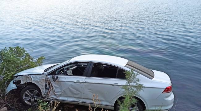 araç sürücüsü A.K. direksiyon hakimiyetini kaybederek kılavuzlu barajına