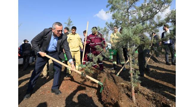 Protokol konuşmalarının ardından Büyükşehir Belediye Başkanı Hayrettin Güngör ve beraberindeki heyet, binlerce fidanı toprakla buluşturdu.