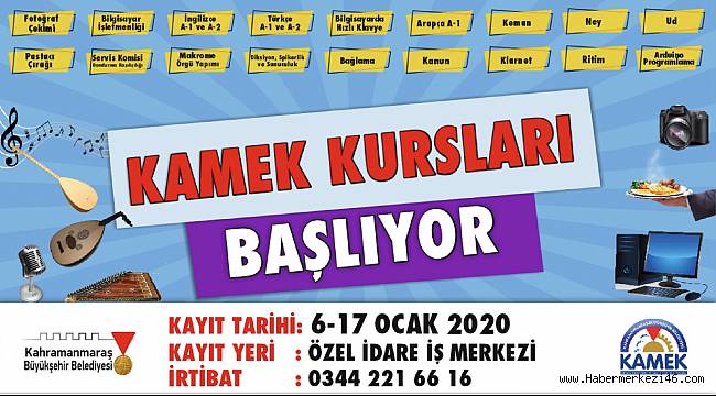 Büyükşehir Belediyesi Meslek Edindirme ve Sanat Eğitimi Kursları yeni dönem kayıtları 6 Ocak Pazartesi gününden itibaren başladı. KAMEK kurslarına kayıtlar 17 Ocak Cuma gününe kadar devam edecek.