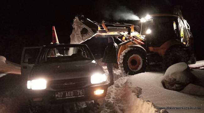 Antalya Büyükşehir Belediyesi ekipleri, greyder ve pikapla bölgeye giderek mahsur kalan 3 kişiye ulaştı.