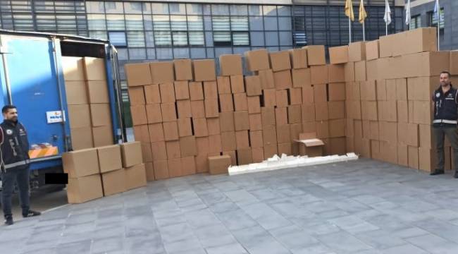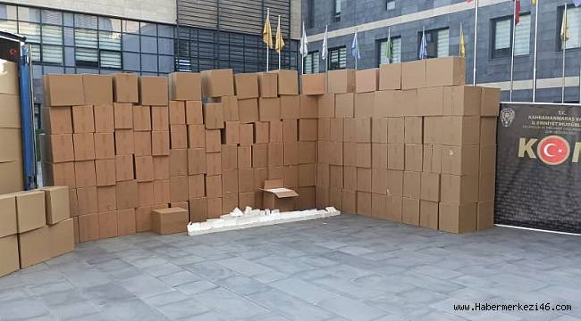 Kahramanmaraş’ta polis ekipleri tarafından yapılan çalışma neticesinde kargo aracı süsü verilen kamyonette yapılan aramada 2 milyon 500 bin adet gümrük akacağı boş makaron ele geçirildi.