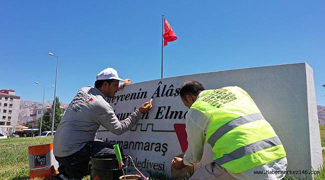 KMBB Fen İşleri Dairesi Başkanlığı Park ve Bahçeler Şube Müdürlüğü ekipleri Göksun’da ki büyük kavşakta yer alan elma figürlerini ve yazıları boyadıktan sonra, çevre temizliğini gerçekleştirdiler.