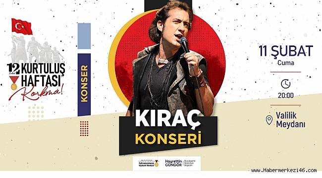 Gerçekleştirilecek etkinlik ile ilgili Kültür Spor ve Turizm Dairesi Başkanlığı tarafından yapılan açıklamada, “Kurtuluş Haftası etkinliklerimiz tüm hızıyla devam ediyor. Program kapsamında 11 Şubat Cuma günü 20.00’da Kıraç konseri düzenliyoruz. Valilik Meydanı’nda gerçekleştirilecek konser öncesi oyuncuları arasında Tamer Karadağlı’nın da yer aldığı ‘Kurtuluş Destanı’ tiyatrosunun gösterimi yapılacak. Programımıza tüm hemşehrilerimiz davetlidir” ifadeleri kullanıldı.