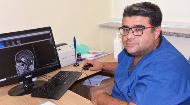 Hastamız gayet iyi rahat. Beynin orta yerinde taban bölgesinde dediğimiz 3,5 santim ebadında ve ceviz büyüklüğündeki tümörümüz, solunum hayat merkezinin önünü kaplaması ve oraya doğru ilerlemesi, sağ ana damarlara doğru ilerleyip tamamen içerine alması ve hipofiz bezini alttan yukarı doğru sarması, bu ebada ulaşması milyonda bir oranda gözükür. Biz bu tümörü, burundan girerek endoskopik yöntemle tamamen ana damarlara herhangi bir zarar vermeden çıkarttık.''