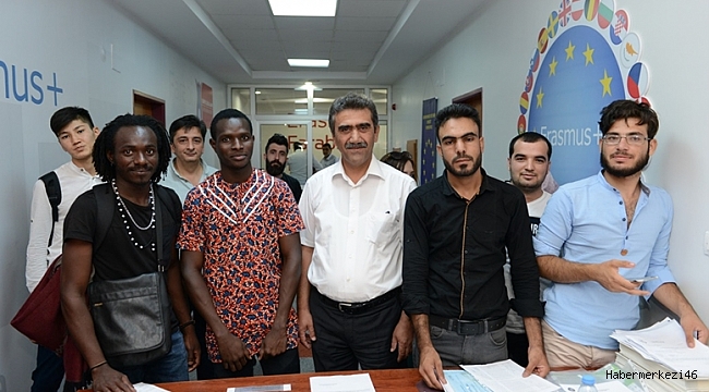 için dünyanın çeşitli ülkelerinden gelen öğrencilerle sohbet eden Rektör Vekili