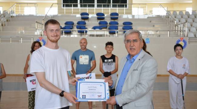 Programın ikinci gününde üniversitemiz Kapalı Spor Salonunda ilimiz Hokey sporcuları ve antrenörlerinin katıldığı uygulama antrenmanı gerçekleştirildi. Antrenmanda Avrupa Hokey Federasyonu (EHF) Eğitim Görevlisi Cameron Findler ve Portekiz Hokey Milli Takımı Antrenörü Hugo Santos, sporculara bazı teknik öğretilerde bulundular.