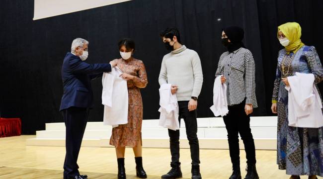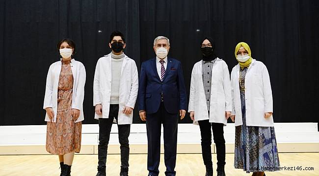 yaptıran öğrencilere beyaz önlükleri Rektör Prof. Dr. Niyazi Can ve protokol
