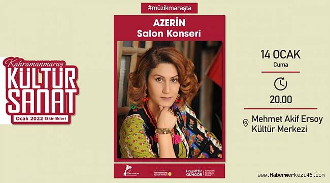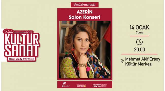 Büyükşehir Belediyesi Ocak Kültür Sanat Sezonu kapsamında 14 Ocak Cuma günü Türk müziğinin usta sesi Azerin konser etkinliğiyle Kahramanmaraş’ta sanatseverlerle buluşacak.