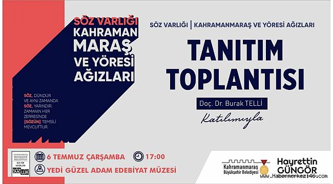 Kahramanmaraş Büyükşehir Belediyesi, şehrin kültür envanterine yeni eserler kazandırmaya devam ediyor. Bu kapsamda, Kahramanmaraş Sütçü İmam Üniversitesi Fen Edebiyat Fakültesi Öğretim Görevlisi Doç. Dr. Burak Telli tarafından kaleme alınan ve Kültür Yayınları’na kazandırılan ‘Söz Varlığı: Kahramanmaraş ve Yöresi Ağızları’ adlı sözlük türündeki eserin tanıtım programı gerçekleştirilecek.