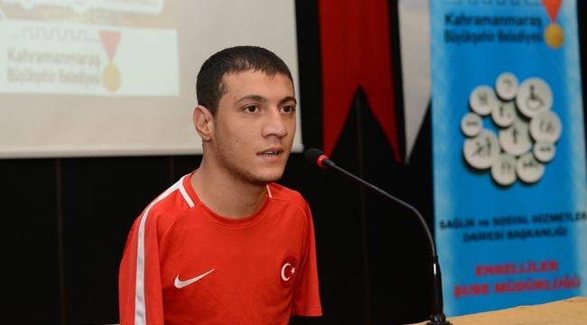 Kahramanmaraş Büyükşehir Belediyesi Engelliler Şube Müdürlüğü’nce düzenlenen söyleşilerde Milli Yüzücü Eroğlu, öğrencilere hayat hikayesini anlatarak nasıl başarılı olduğunu dile getirdi.