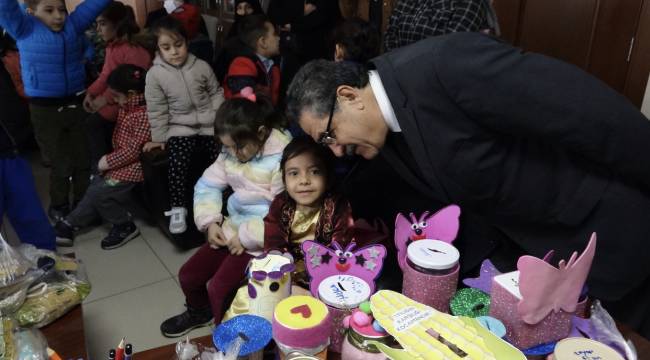 Müftü Canbolat konuşmasının devamında çocukların anne babalarına teşekkür ederek, “Bu çocuklarımız harçlıklarından biriktirdikleri kumbara ve gıda yardımlarını getirerek kampanyaya destek oldular. İnanıyorum ki, bazı işler küçükken başlar. Minikler bu yaşta yardım etmenin güzelliğini yaşar ve öğrenirse büyüdüğünde yardım etmenin zorluğunu çekmez. Bir öğrencimizin kumbarasında yazan “İyiliğin karşılı kocamandır” sloganı çok önemlidir, kendisini tebrik ediyorum. Kampanyamız gerek nakdi yardım , gerekse gıda veya battaniye vs. şeklinde devam etmektedir. Hedefimiz üşüyen ve aç kimsenin kalmamasıdır. Destek olalım yardımcı olalım.”