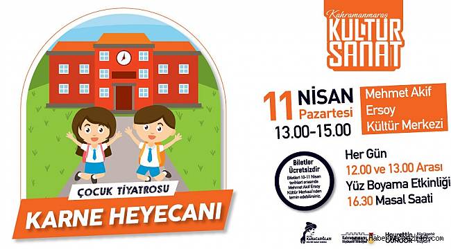 Büyükşehir Belediyesi tarafından birbirinden eğlenceli tiyatro gösterileri hafta boyunca çocuklarla buluşturulacak. Etkinlik takvimi kapsamında, 11 Nisan Pazartesi günü Karne Heyecanı, 12 Nisan Salı günü Unutkan Davulcu, 13 Nisan Çarşamba günü Nasrettin Hoca, 14 Nisan Perşembe günü Karagöz – Hacivat ve 15 Nisan Cuma günü Keloğlan’ın Eşeği adlı çocuk tiyatroları minik izleyicileriyle buluşacak. Tiyatro gösterilerin tamamı 13.00 ve 15.00’de iki seans şeklinde sahnelenecek. Mehmet Akif Ersoy Kültür Merkezi’nde sahnelenecek oyunların biletleri yine aynı noktadan ücretsiz olarak temin edilebilecek.