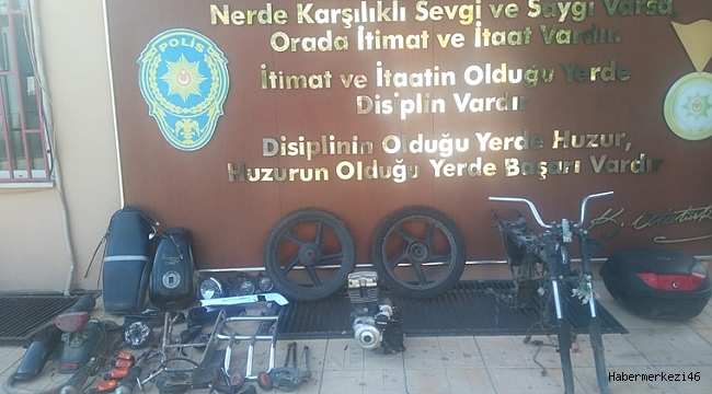 Şüphelilerin park halindeki motosikleti kilidini kırarak çaldıkları, bir evin bahçesinde tek tek parçalara ayırdıkları ve başka bir motosiklete parça monte ettikleri anlaşıldı.