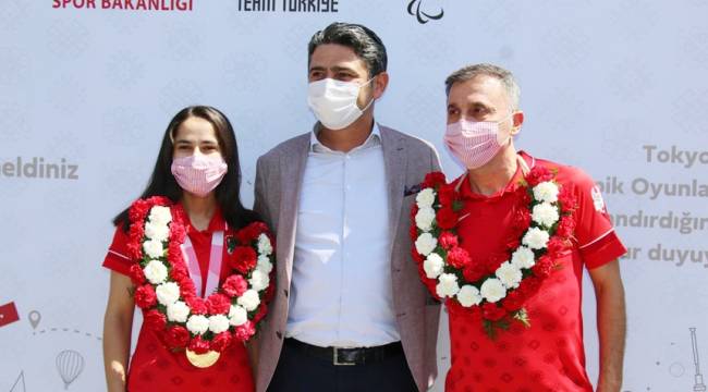 akrabaları, Fatmagül Güler’in arkadaşlarının katıldığı törende İl Müdürü Cemil Boz sporcuyu çiçekler ile karşıladı.