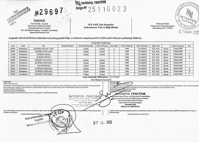 Tarım ve Orman Bakanlığı onaylı akredite laboratuvarda yapılan analizlerin sonuçlarının da markanın kendi iç kontrolleriyle tam uyumlu olduğu açıklandı.