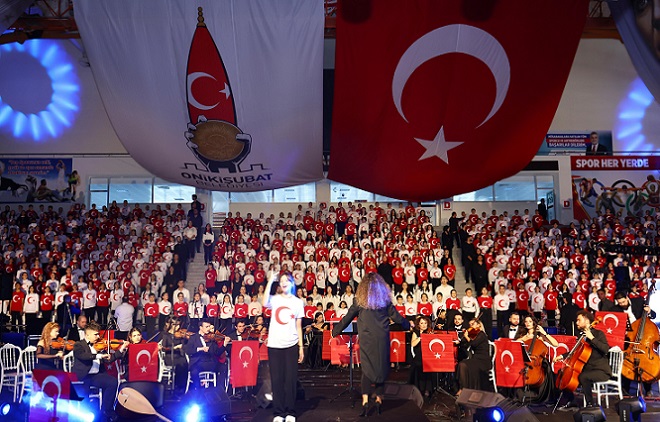 Kültür ve sanata verdiği değerle kent yaşamına yeni bir soluk kazandıran Onikişubat Belediyesi, bu kez Cumhuriyet’in 102 yıllık gururunu bin sesin gücüyle tüm Kahramanmaraş’a taşıdı.