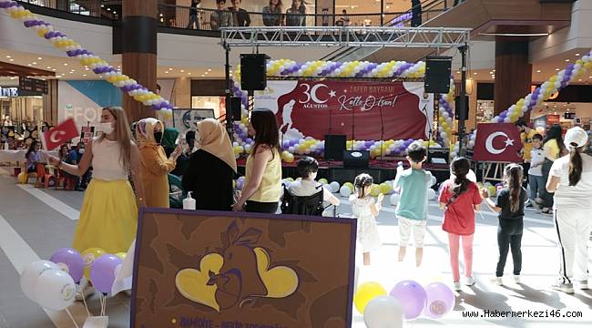 Vatandaşların yoğun ilgi gösterdiği programda down sendromlu öğrenciler ‘+1 Farkla’ diyerek yeteneklerini sergilerken ziyaretçiler de onlara eşlik etti.