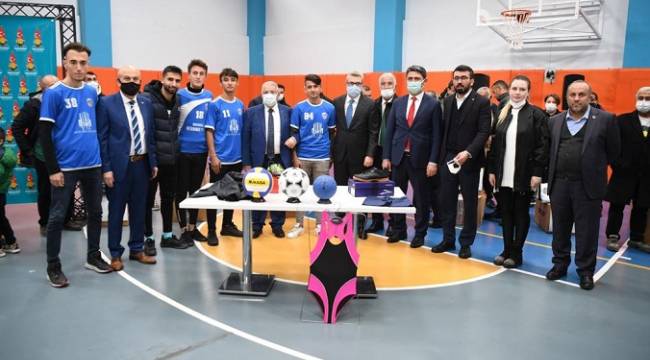 210 tane futbol topu, 27 voleybol topu, 10 hentbol topu, 576 eşofman takım, 500 yağmurluk, 462 futbol ayakkabısı, 84 spor ayakkabı, 64 forma, kız-erkek mayo, masa tenisi raket ve topu ve daha birçok malzeme için kendisine çok teşekkür ediyorum.”