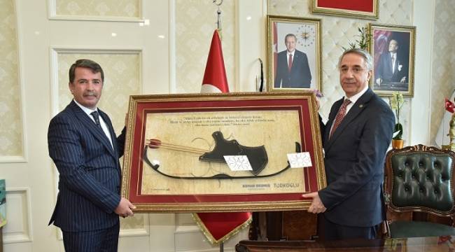 Bir dizi ziyaretler için Türkoğlu ilçesine gelen AK Parti MKYK Üyesi Yerel Yönetimler Başkan Yardımcısı Mücahit Yanılmaz, Kahramanmaraş Büyükşehir Belediye Başkanı Hayrettin Güngör, AK Parti İl Yerel Yönetimler Başkanı Hakan Dereli ve Genel Merkez Yerel Yönetimler Uzmanı Ferdi Kandemir ile birlikte, Türkoğlu Belediye Başkanı Osman Okumuş’ u makamında ziyaret ettiler.