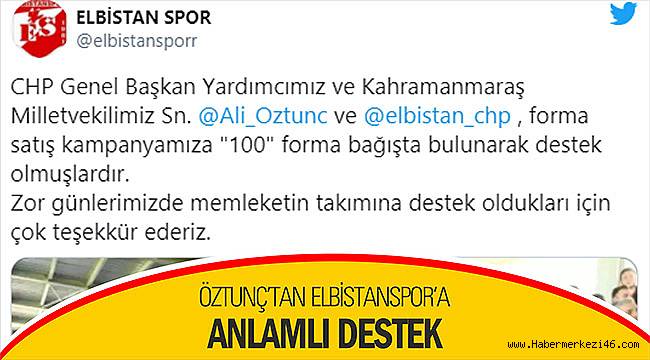 Kişisel sosyal medya hesabından konuya dair açıklamada bulunan Öztunç, “Elbistansporumuzun başlattığı destek kampanyası kapsamında 100 forma da ben satın aldım. Daha önce de Kahramanmaraşspor kampanyasına aynı katkıda bulunmuştum. Darısı diğer siyasilerin başına... Umarım onlar da Elbistanspor’a destek olurlar.” Dedi.