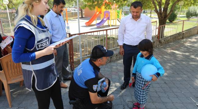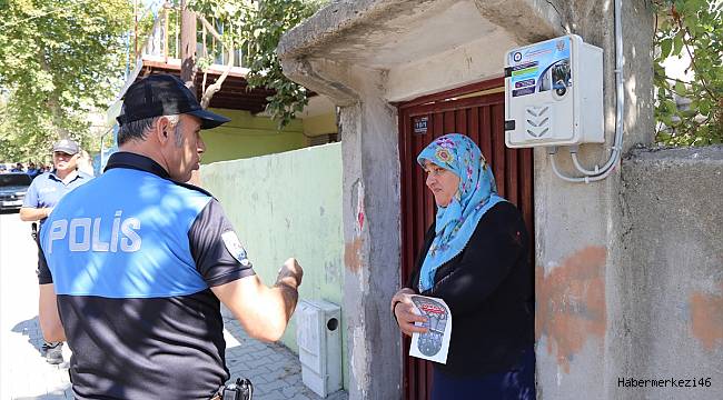 Hırsızlık olaylarının yaşanmamasına yönelik uyarıların yer aldığı broşürleri dağıtan ekipler, vatandaşlara alınması gereken önlemleri anlattı.