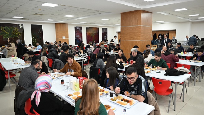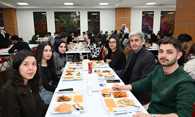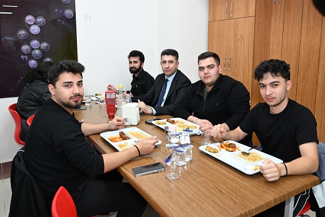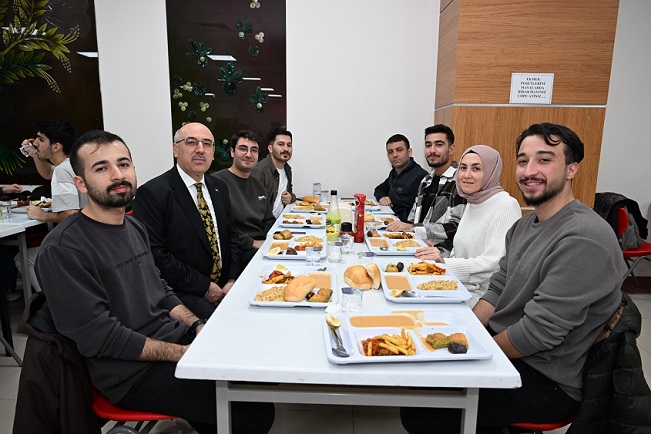 İftar öncesinde ve sonrasında öğrencilerle sohbet eden Rektör Ak, onların talep ve görüşlerini dinledi.