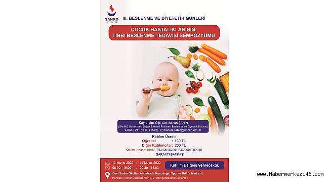 SANKO Üniversitesi Sağlık Bilimleri Fakültesi Beslenme ve Diyetetik Bölümü tarafından 13-14 Mayıs 2022 tarihlerinde “Çocuk Hastalıklarının Tıbbi Beslenme Tedavisi Sempozyumu” düzenlenecek.