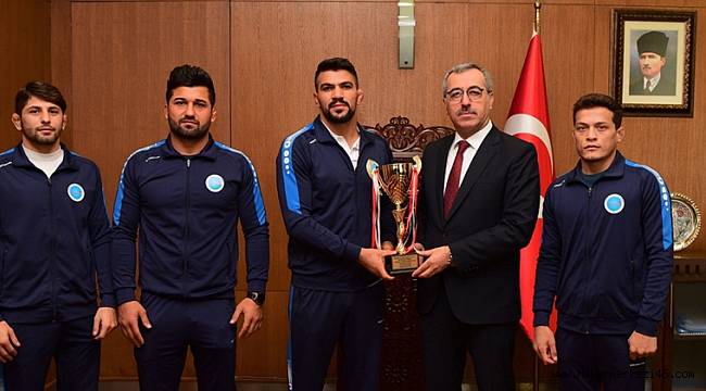 Kahramanmaraş’taki Türkiye Büyükler Serbest Güreş Şampiyonası'nda takım halinde Türkiye Üçüncüsü olan Büyükşehir Belediye sporcularını makamında ağırlayan Başkan Güngör, “42 şehirden 109 takım ve 700’ün üzerinde sporcunun katıldığı şampiyonada sporcularımız takım halinde 3. olarak bize gururu yaşattılar” dedi.