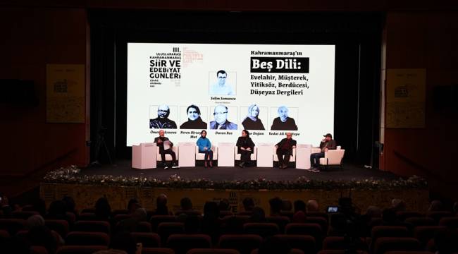 Kahramanmaraş Büyükşehir Belediyesi tarafından bu yıl 3’üncüsü düzenlenen Uluslararası Şiir ve Edebiyat Günleri’nin son gününde Bilge Doğan, Vedat Ali Kızıltepe, Peren Birsaygılı Mut ve Duran Boz’un katılımıyla ‘Kahramanmaraş’ın Beş Dili’ konulu söyleşi etkinliği düzenlendi. 3’üncü Uluslararası Şiir ve Edebiyat Günleri kapsamında düzenlenen son oturuma okurlar da büyük ilgi gösterdi. Necip Fazıl Kısakürek Kültür Merkezi’nde Yazar Ömer Yalçınova moderatörlüğünde gerçekleştirilen etkinlikte konuşmacılar; Berdücesi, Düşeyaz, Evelahir, Müşterek ve Yitiksöz dergilerini anlattı. Kahramanmaraş’ta dergicilik, dergiciliğin geçmişi ve dergicilikte Kahramanmaraşlı yazarlarının yerinin konuşulduğu etkinlik, katılımcıların beğenisini kazandı. Konuşmacılar, okurlardan gelen soruları da büyük bir samimiyetle yanıtladı.