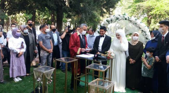 Nikah törenine Kahramanmaraş Valisi Ömer Faruk Coşkun, milletvekili Habibe Öçal, Büyükşehir Belediye Başkanı Hayreddin Güngör, protokol, gelin ve damadın yakınları ile sınırlı sayıda davetli vatandaş katıldı.