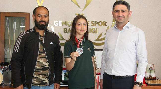 Başarılı sporcu Nisa Ermeydan ve Antrenörü Mahmut Kara Şampiyona dönüşü Gençlik ve Spor İl Müdürü Cemil Boz’u ziyaret ettiler. İl Müdürü elde edilen başarıdan dolayı sporcuyu ve antrenörünü tebrik ederek Milli takımla katılacağı Balkan Şampiyonasında Başarılar diledi.