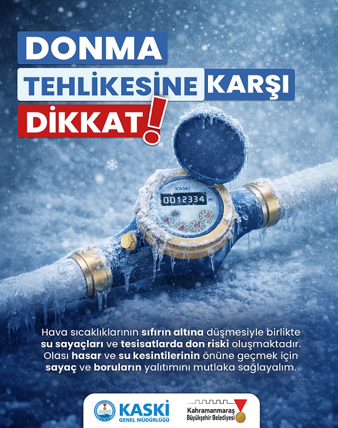 KASKİ’den yapılan açıklamada “Hava sıcaklıklarının sıfırın altına düşmesiyle birlikte su sayaçları ve tesisatlarda don riski oluşmaktadır.