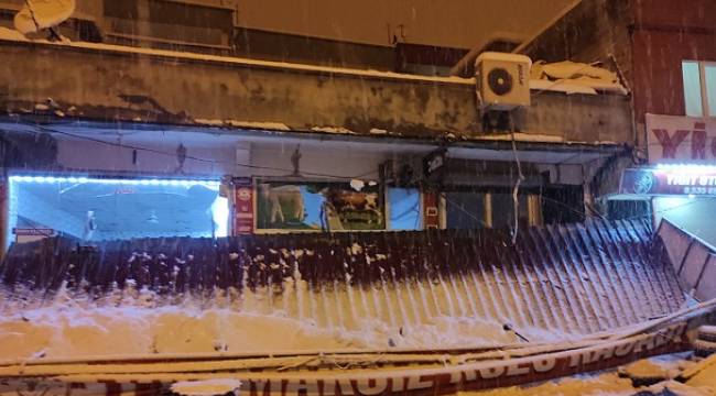 Kahramanmaraş (SHA) – Kahramanmaraş’ta bugün etkisini artıran yoğun kar yağışı sonrası bir işyerinin sundurması ağırlığa dayanamayarak yıkıldı.