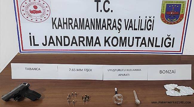 Kahramanmaraş’ta jandarma ekipleri tarafından şüphe üzerine durdurulan otomobilde ruhsatsız tabanca ile birlikte uyuşturucu madde bulundu.