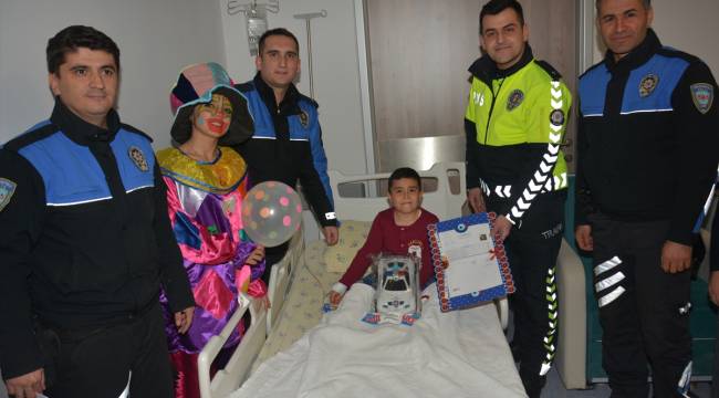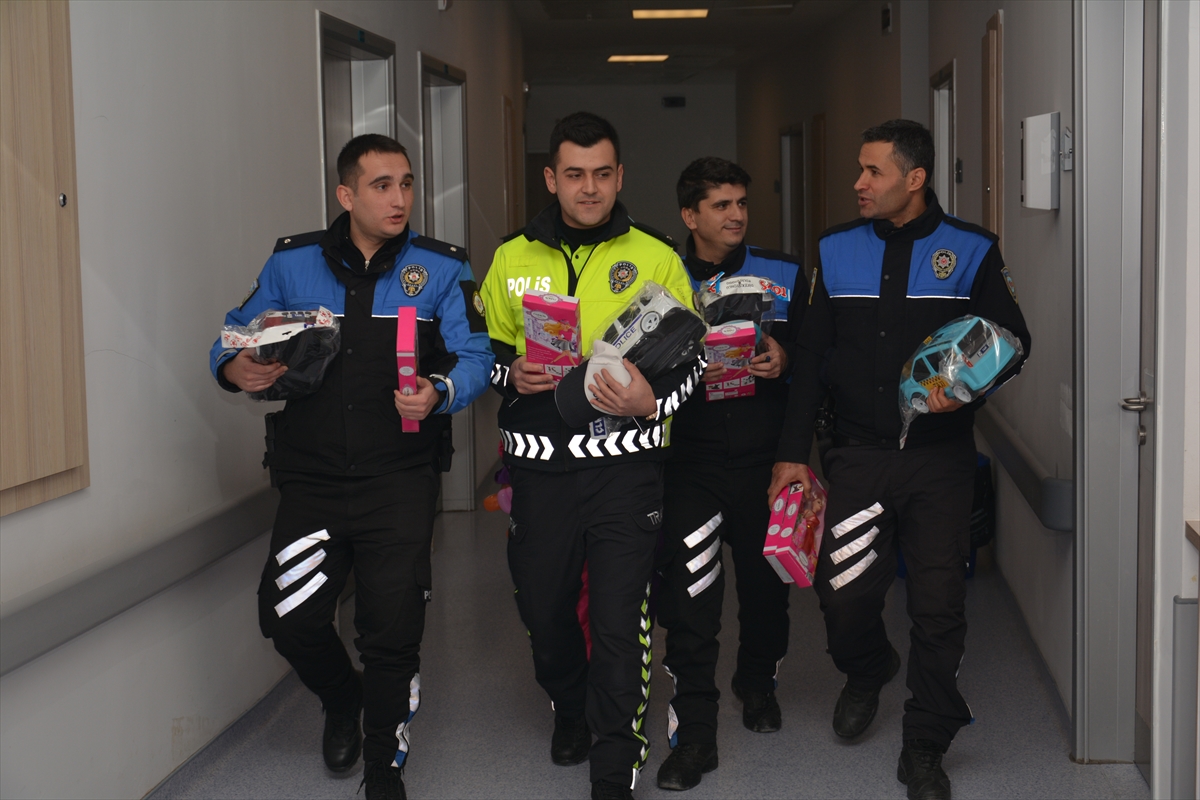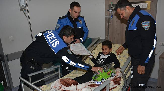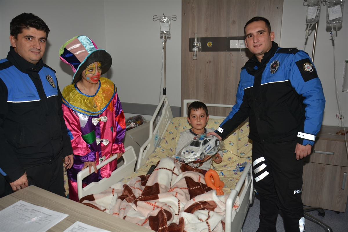 Toplum Destekli Polislik Büro Amiri Bilal Tekbıyık, AA muhabirine yaptığı açıklamada, hastanede tedavi gören öğrencileri sevindirmek istediklerini söyledi.