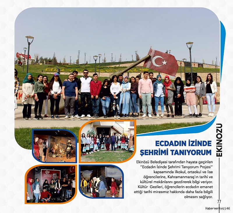 33.  “Ecdadın İzinde Şehrimi Tanıyorum Projesi” kapsamında ilkokul, ortaokul ve lise öğrencilerine, Kahramanmaraş’ın tarihi ve kültürel mekânlarını gezdirerek bilgilendirme yaptık. Kültür gezileriyle, öğrencilerin ecdadın emanet ettiği tarihi mirasımız hakkında daha fazla bilgi sahibi olmasını sağladık.