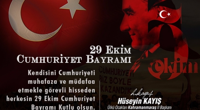 Ülkü Ocakları Kahramanmaraş İl Başkanı Hüseyin Kayış 29 Ekim Cumhuriyet Bayramı münasebetiyle bir mesaj yayımladı.
