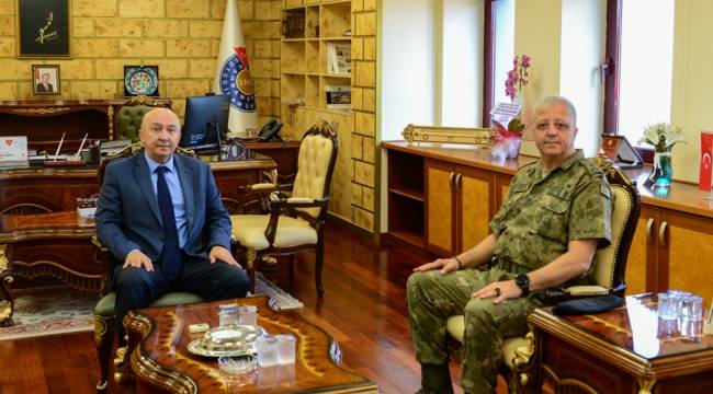 Kahramanmaraş 2. Zırhlı Tugay Komutanı Tuğgeneral Emin Mehmet Terzioğlu, Kahramanmaraş Sütçü İmam Üniversitesi (KSÜ) Rektörü Prof. Dr. Alptekin Yasım’a Rektörlük makamında “hayırlı olsun” ziyareti gerçekleştirdi.