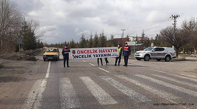 Kahramanmaraş’ın Elbistan ilçesinde jandarma trafik ekipleri, yaya ve okul geçitlerinde yaptığı trafik denetiminde sürücüleri üzerinde, “Öncelik hayatın, öncelik yayanın” yazan pankartla uyardı.