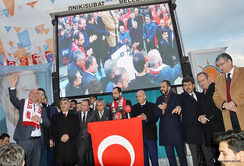 Cumhurbaşkanı Yardımcısı Fuat Oktay, konuşmasının ardından AK Parti Genel Başkan Yardımcısı Mahir Ünal, AK Parti Kahramanmaraş İl Başkanı Ömer Oruç Bilal Debgici, MHP Kahramanmaraş İl Başkanı Ertuğrul Doğan ve Cumhur İttifakı Kahramanmaraş Büyükşehir Belediye Başkan Adayı Hayrettin Güngör ve Cumhur İttifakı Elbistan Belediye Başkan Adayı Mehmet Gürbüz’le birlikte platformda partilileri selamladı.