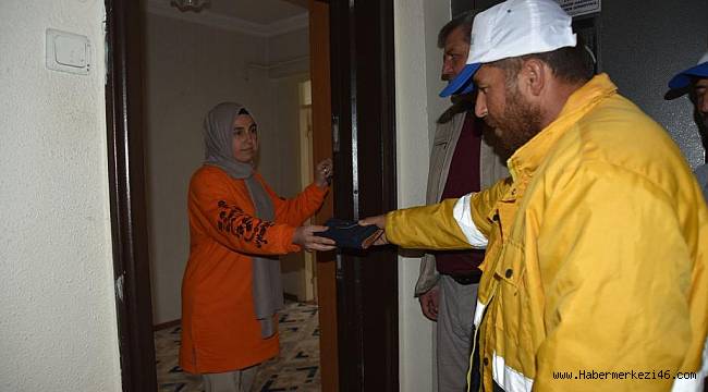 Buldukları cüzdanla birlikte mahalle muhtarına giden iki görevli, muhtar Mehmet Yılmaz ile birlikte kahramanmaraş merkezde ikamet eden cüzdanın sahibi Döndü Akçakaya’ya içinde yaklaşık 3 bin lira para ve kredi kartları olan cüzdanı teslim etti.