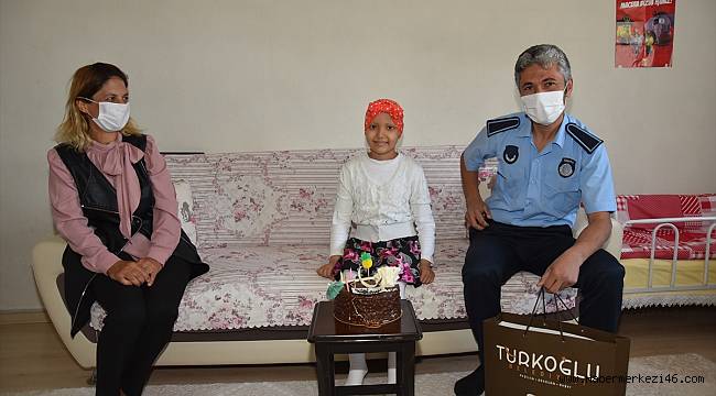 Kahramanmaraş'ta Türkoğlu Belediyesi ekibi, sinir sistemi kanseri (nöroblastom) hastası 9 yaşındaki Ecrin Akar'a doğum günü sürprizi yaptı.