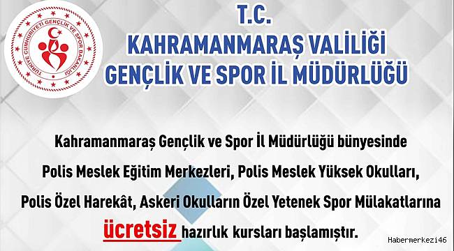 Gençlik ve Spor İl Müdürlüğü tarafından 2018 yılında ücretsiz olarak başlatılan polis ve askeri okulların spor mülakatları hazırlık kursları yoğun talep üzerine 2019 yılında da devam ediyor.