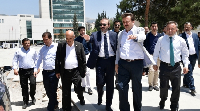 Kahramanmaraş Büyükşehir Belediyesine gelmeden önce yapımı devam eden Milli İrade Meydanı’nda incelemelerde bulunan ak parti genel başkan yardımcısı ve parti sözcüsü Mahir Ünal, burada Kahramanmaraş Büyükşehir Belediye Başkanı Fatih Mehmet Erkoç’tan bilgiler aldı.