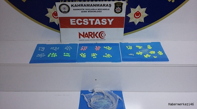Kahramanmaraş Narkotik polisleri, gece yarısı durumundan şüphelendiği ve Adana Cevre yolundan şehre seyir hainde olan 34 Plakalı araca polis kontrol noktasında operasyon yaptı. Araç içerisinde S.Y. isimli şahıstan 198 adet ecstacy hap ele geçirildi. Aynı araç içerisinde bulunan Y.E. K. isimli şahıstan 5, 30 gram esrar maddesi ele geçirildi. İki şahsa da uyuşturucu madde ticareti yapma veya sağlama suçundan işlem yapılarak gözaltına alındı.