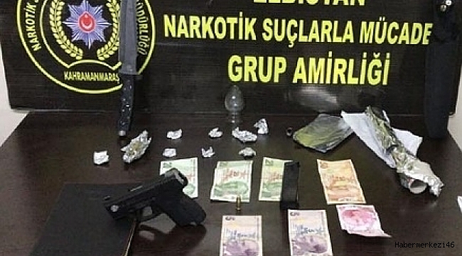 tabanca ve 1 adet mermi, 140 TL uyuşturucu satışından elde edilen para ele