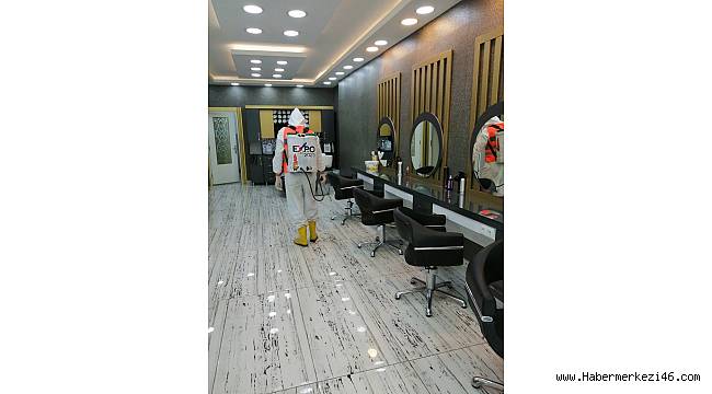 ilçesinde bulunan tüm berber ve kuaförlerin dezenfektesini gerçekleştirdi.