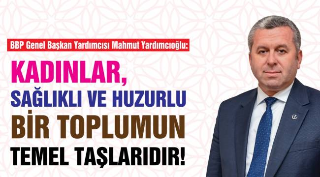 Mesajında kadına yönelik her türlü şiddeti kınadığını dile getiren BBP Genel Başkan Yardımcısı Mahmut Yardımcıoğlu, şunları kaydetti: “Kadınlarımız, sevgiyi, fedakârlığı, üretkenliği ve duyarlılığı temsil eden, huzurlu ve sağlıklı bir toplumun temel taşlarıdır. Böylesine değerli bir varlık olan kadınlarımızın, aileden veya dışarıdan maruz kaldıkları her türlü şiddete karşıyız. Onları bir emanet olarak görüp hayatımız boyunca da bu emanete sahip çıkmalıyız. Ben, bu vesilelerle başta tüm şehit anneleri ve eşleri olmak üzere; hayatın en başından, sonuna dek, sevginin, fedakarlığın ve azmin anlamı olan tüm kadınların 8 Mart Dünya Kadınlar Günü'nü kutluyorum.”