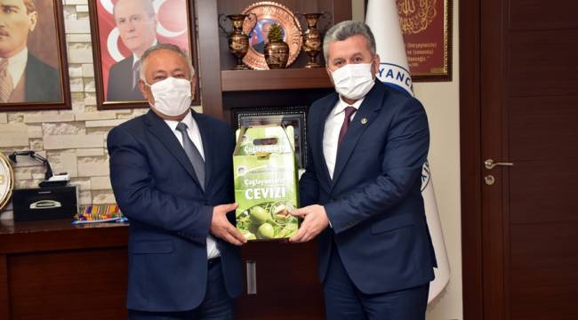 Ziyaretin sonunda Belediye Başkanı Hanifi Sarıaltun, BBP heyetine Çağlayancerit Cevizi takdim etti.